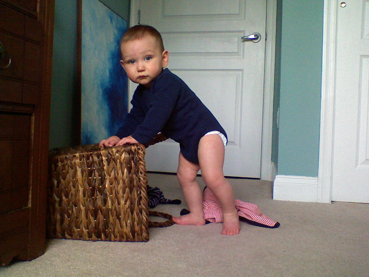 lars and i both have colds. my throat was getting sore last night, i slept like crap and ....woke up feeling like crap. lars cried a few times in the night, but every time i went to check on him he was fast asleep. so i guess he was OK. but i heard heavy breathing.....and this morning he had a runny nose. he seems ok other than that, just wants to be held alot.